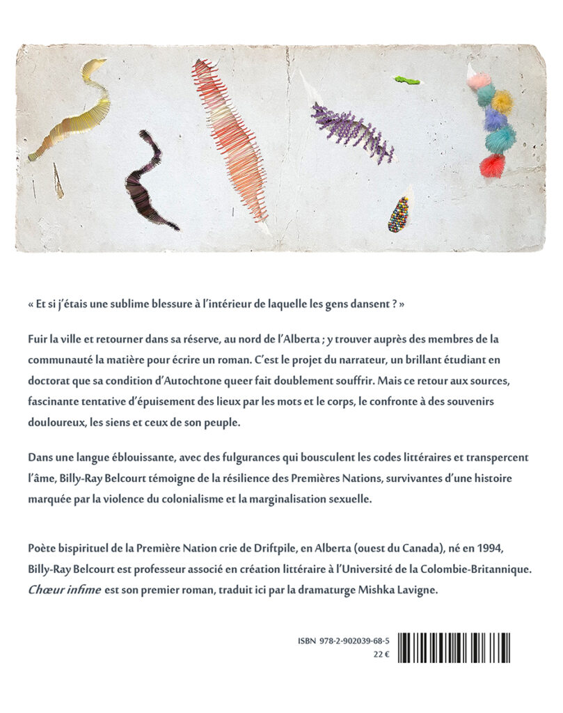 « Une confluence absolument éblouissante de grandes idées et d’émotions brutes, racontées par la voix poétique singulière de Billy-Ray Belcourt. Chœur infime parle d’amour, de questionnement et de lutte pour la vie, et c’est le premier roman le plus convaincant que j’ai lu depuis des années. », Jami Attenberg, autrice de I Came All This Way to Meet You.